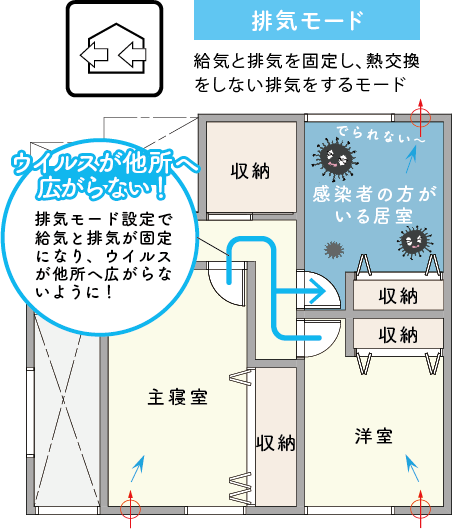 2.ファンが反転し、給気と排気が入れ替わります。 |